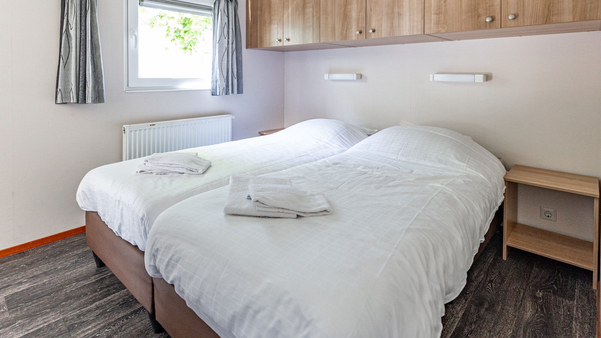 The bungalow has two bedrooms, one of which has a private bathroom. There is also a separate bathroom, both equipped with a shower and toilet, which makes these bungalows very suitable for double occupancy.