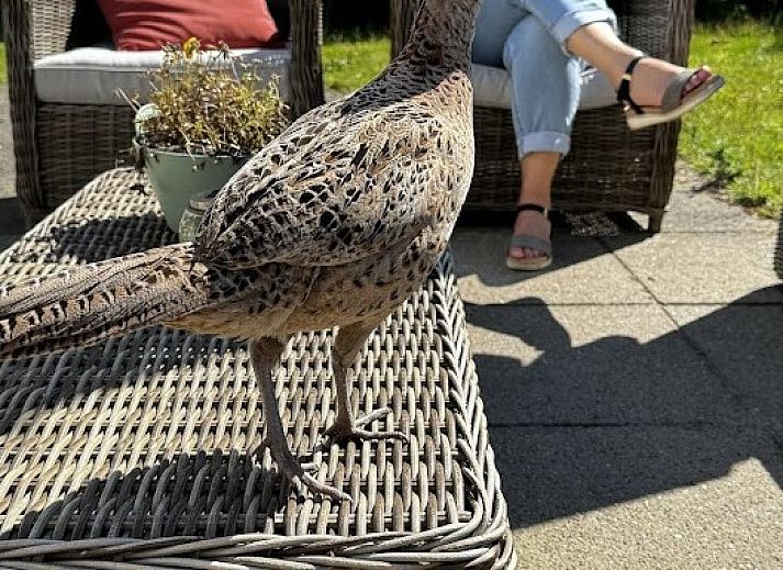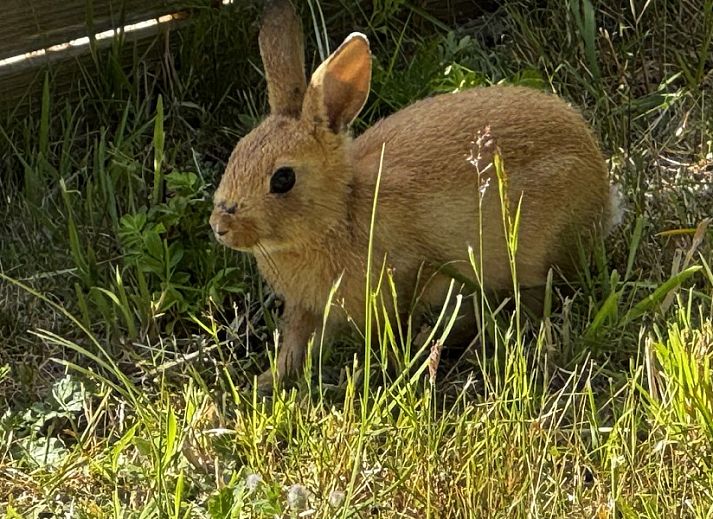 Gezellig hoe de konijnen en fazanten om het huis lopen.