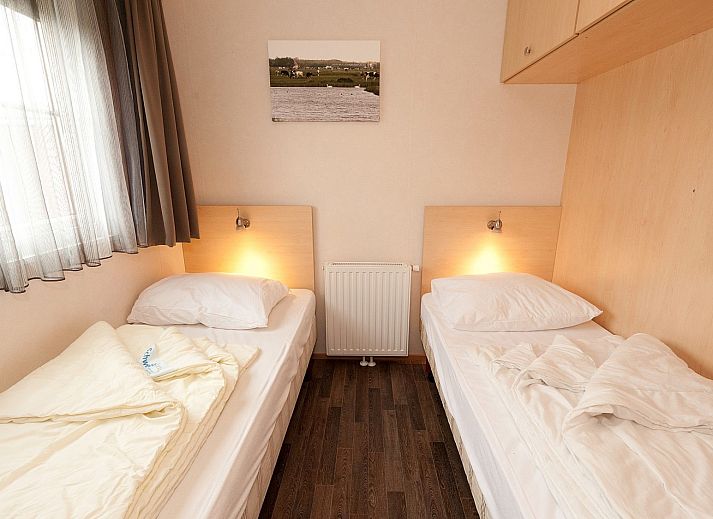 Le bungalow dispose de deux chambres, chacune équipée de deux lits simples avec oreillers et couettes. Vous pouvez louer du linge de maison ou apporter le vôtre. Il y a également une salle de bains séparée avec une douche à l'italienne et un lavabo.
