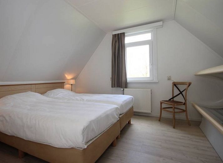 À l'étage supérieur du bungalow pour 6 personnes se trouvent deux chambres à coucher. Les deux chambres sont équipées de 2 lits simples à sommier et de moquette. L'une des deux chambres dispose d'un transat et l'autre d'un lit d'enfant. Les lits sont tous équipés de couettes. La location de linge est obligatoire. Vous devez apporter vos propres draps pour le lit de bébé.
