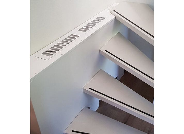 À l'étage supérieur se trouvent deux autres chambres à coucher séparées, chacune avec deux lits boxspring, un lit d'enfant et une armoire, une nouvelle salle de douche et un WC séparé. L'escalier peut être sécurisé par une grille.