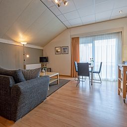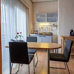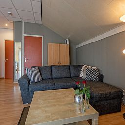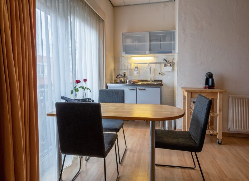 Cet appartement est situé au premier étage de l'auberge. Le salon dispose d'un coin salon avec un canapé-lit pour 3 personnes, d'une télévision LED et d'un coin repas. La kitchenette est équipée d'une plaque vitrocéramique à deux feux et d'un réfrigérateur. L'appartement comprend une chambre avec un lit double. La salle de bains est équipée d'une douche et de toilettes. L'appartement dispose d'une grande porte coulissante et d'un balcon français avec de l'espace pour se tenir debout.