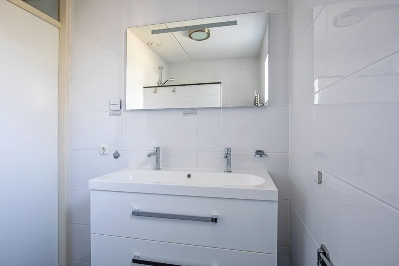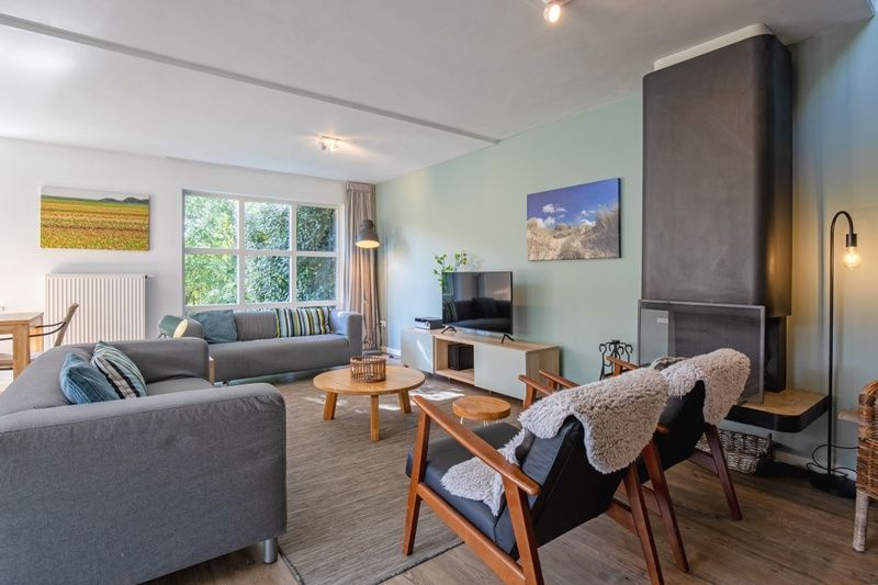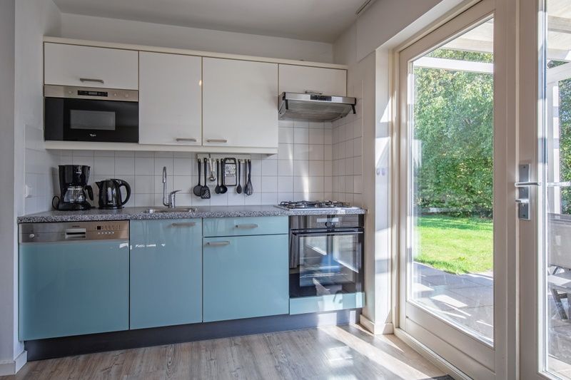 Le salon offre suffisamment de place pour toute la famille et dispose d'un coin salon et salle à manger, d'une télévision et d'une cheminée. La cuisine ouverte comprend un lave-vaisselle et un micro-ondes. Il y a 3 chambres à coucher, dont une au rez-de-chaussée. Au rez-de-chaussée se trouvent des toilettes séparées et une salle de bains avec un grand lavabo et une douche à l'italienne. Au premier étage, une salle de bains avec baignoire, lavabo et toilettes. Ce bungalow mitoyen et agrandi dispose d'un grand jardin avec terrasse.