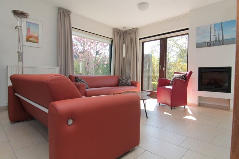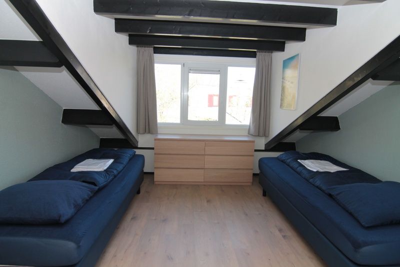 Entrée. Vous entrez dans une salle de séjour accueillante avec un coin salon confortable et une télévision. A côté de la salle à manger se trouve la cuisine semi-ouverte, équipée d'un lave-vaisselle, d'un micro-ondes et d'un réfrigérateur. Au rez-de-chaussée de cette maison de vacances indépendante se trouve une chambre à coucher avec deux lits simples et une salle de bains avec douche, lavabo et toilettes. A l'étage se trouvent deux autres chambres, toutes deux équipées de deux lits simples. Vous disposez d'un jardin spacieux avec une terrasse, équipée de meubles de jardin. Il y a également un petit abri pour les vélos.