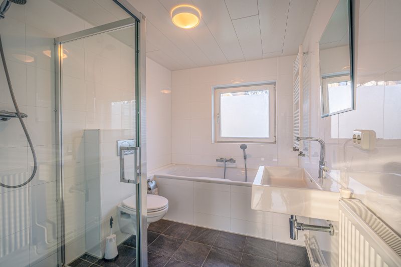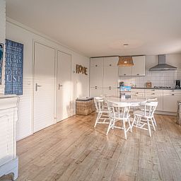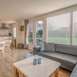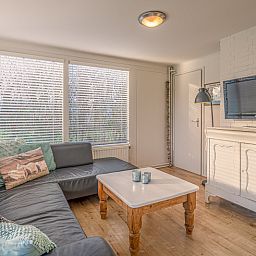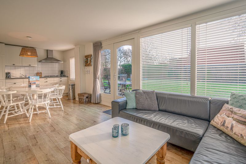 Le salon dispose d'un coin salon avec une télévision LCD et un lecteur DVD. Il y a également un coin repas. La cuisine ouverte est équipée d'un lave-vaisselle et d'un Senseo. Il y a deux chambres à coucher avec deux lits simples chacune. La salle de bains est équipée d'une douche, d'une baignoire, d'un lavabo et de toilettes. Ce bungalow dispose d'un grand jardin orienté au sud. Des meubles de jardin sont disponibles.
