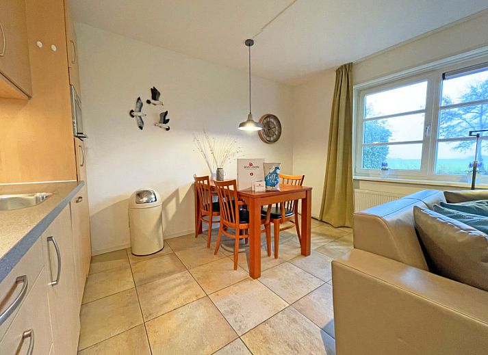 Le salon dispose d'un coin salon avec télévision et d'un coin repas. La cuisine ouverte est équipée d'un réfrigérateur, d'une machine à café, d'une machine à café Senseo, d'une bouilloire et d'un four à micro-ondes. Il y a deux chambres à coucher avec 2 lits simples chacune. La salle de bains spacieuse est équipée d'une douche avec chaise de douche et de toilettes avec supports. Un lave-linge et un sèche-linge sont disponibles. Cet appartement se trouve au rez-de-chaussée et dispose d'une terrasse spacieuse avec mobilier de jardin. La terrasse est orientée vers le sud et offre une vue sur la campagne de Texel.