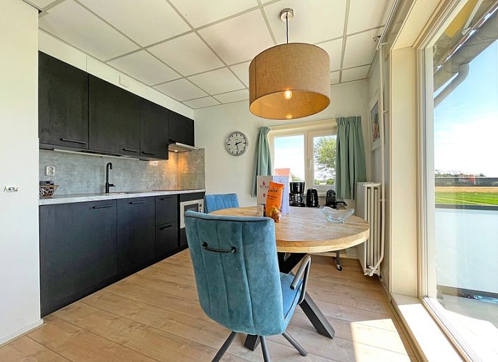 Le salon dispose d'un coin salon avec une télévision LCD et un lecteur DVD. Il y a également un coin repas. La cuisine ouverte est équipée d'un réfrigérateur, d'une cafetière, d'une machine à café Senseo, d'une bouilloire et d'un four à micro-ondes. Il y a une chambre à coucher avec 2 lits simples à sommier à ressorts. La salle de bains est équipée d'une douche, d'un lavabo et de toilettes. Cet appartement d'angle se trouve au 1er étage et dispose d'un balcon offrant une vue panoramique sur la campagne de Texel.