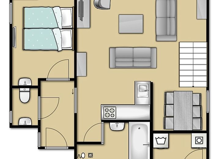 La cuisine ouverte de cette maison de vacances indépendante est équipée d'un four, d'un micro-ondes, d'un lave-vaisselle et d'un Senseo. La salle de séjour dispose d'un coin salon avec cheminée, d'une télévision à écran plat et d'un lecteur DVD. Il y a également un coin repas. Au rez-de-chaussée se trouve une chambre avec 2 lits simples et une télévision. La salle de bains est équipée d'une baignoire et d'une douche. Les toilettes sont séparées. Dans le débarras se trouvent une machine à laver et un sèche-linge. À l'étage, il y a deux chambres, dont l'une a un lit double avec des matelas simples. L'autre chambre dispose de deux lits simples. La deuxième salle de bains est équipée d'une douche, d'un lavabo et de toilettes. Cette maison de vacances dispose d'un jardin avec une terrasse. Des meubles de jardin sont disponibles.