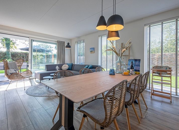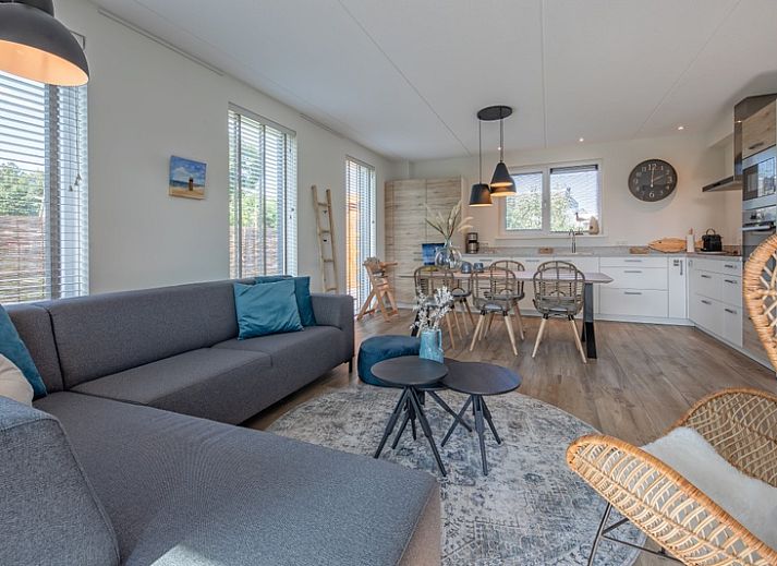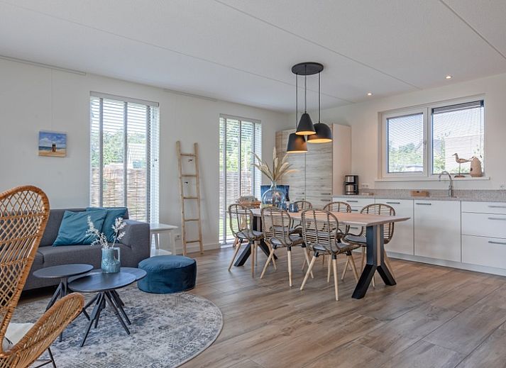 Hall d'entrée spacieux avec buanderie adjacente. Le salon dispose d'un coin salon avec une télévision intelligente et un haut-parleur réseau/bluetooth. La cuisine ouverte est équipée d'une plaque à induction, d'un micro-ondes combiné, d'un réfrigérateur, d'un congélateur, d'un lave-vaisselle, d'un Quooker, d'une machine à café et d'une machine Nespresso. Il y a des toilettes supplémentaires séparées. La chambre au rez-de-chaussée est équipée de deux lits simples à sommier tapissier (200 de long) et d'une télévision intelligente. La salle de bains attenante est équipée d'une douche avec poignées, d'un lavabo et de toilettes.