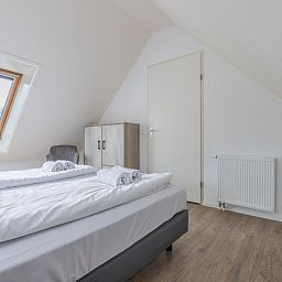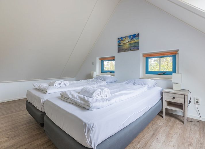 Surface d'environ 130 m². Rez-de-chaussée : séjour avec cuisine ouverte avec four à micro-ondes et lave-vaisselle. Hall d'entrée avec accès à la salle de bain avec douche. Toilettes séparées. Terrasse avec mobilier de jardin. Premier étage : deux chambres à coucher et salle de bains avec baignoire et toilettes. La disposition des chambres et des salles de bains peut varier d'un bungalow à l'autre. Certains bungalows disposent d'un sauna infrarouge. Vous pouvez indiquer le sauna infrarouge comme préférence lors de la réservation. Cette option est payante.