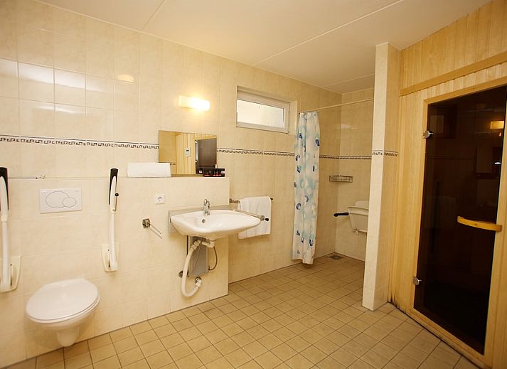 Ce bungalow indépendant peut accueillir jusqu'à 6 personnes. Au rez-de-chaussée, vous trouverez un salon confortable avec une télévision intelligente, une cuisine ouverte avec des appareils encastrés et des toilettes adaptées. Le sous-sol est accessible par un escalier ou un ascenseur (108 x 82 cm). Vous y trouverez une chambre supplémentaire avec 2 lits en hauteur, ce qui porte le nombre total de lits à 8. Pratique si vous aimez dormir séparément ou si vous avez des problèmes de mobilité. Il y a également une salle de bain adaptée et une chambre avec 2 lits simples. Au premier étage, il y a une deuxième salle de bains et deux chambres avec deux lits simples chacune. A l'extérieur, il y a un jardin avec une terrasse meublée et un parking pour 1 voiture. Vous pouvez utiliser le wifi gratuitement. Pour plus d'informations sur les adaptations pour les personnes handicapées, consultez le site roompot.nl/care. En outre, le bungalow dispose d'une machine à laver et d'un sèche-linge.