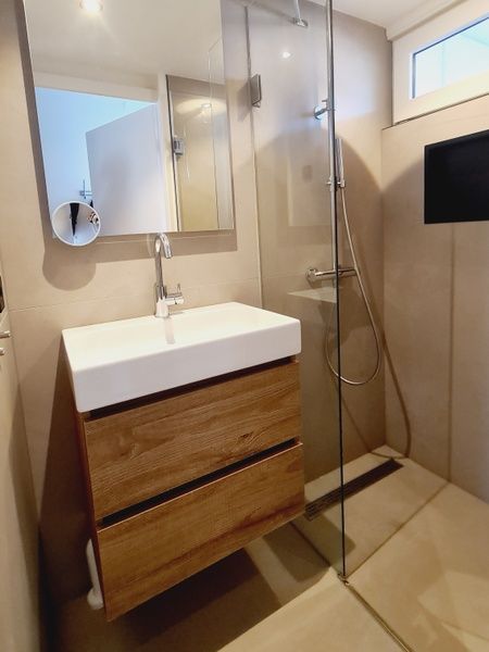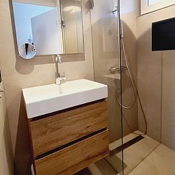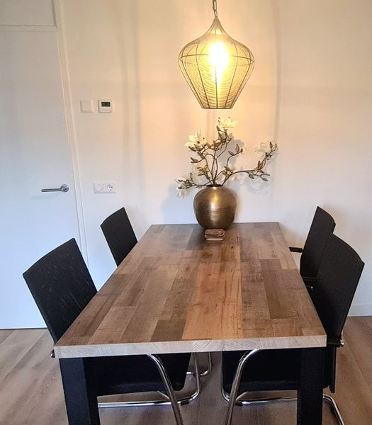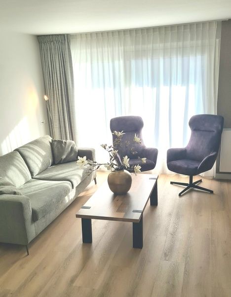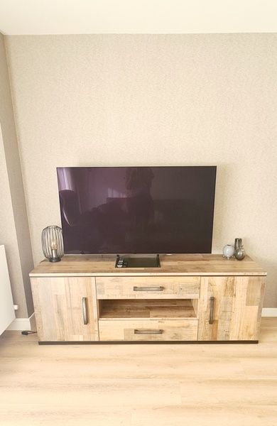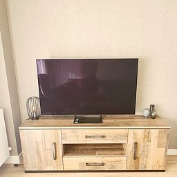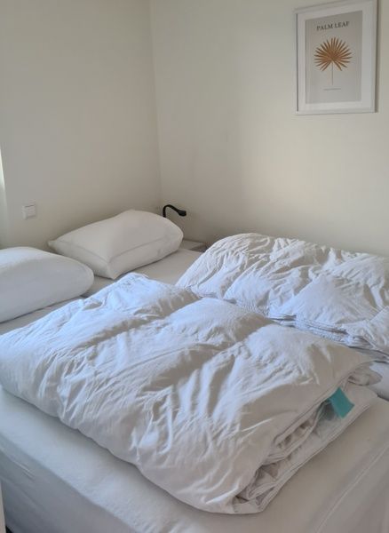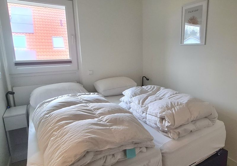 Appartement au 1er étage. Salon avec coin salon, coin repas et télévision connectée. Cuisine ouverte entièrement équipée avec robinet Quooker, four à micro-ondes combiné, lave-vaisselle, cafetière, bouilloire, grille-pain et réfrigérateur avec compartiment congélateur. Chambre avec 2 lits simples à sommier tapissier et grands placards. Salle de bains avec douche, toilettes séparées. Balcon ensoleillé avec coin salon. Lave-linge et sèche-linge disponibles dans le bâtiment.