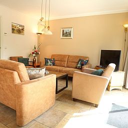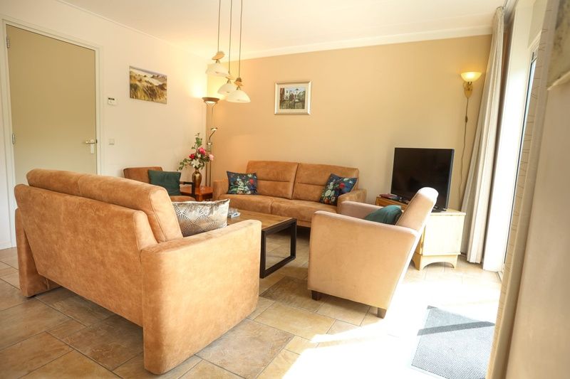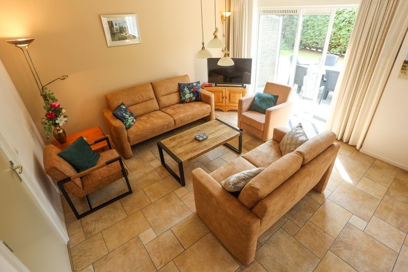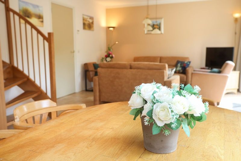 Le salon de cette maison de vacances indépendante dispose d'un coin salon, d'une télévision, d'une radio/lecteur CD et d'un coin repas. La cuisine ouverte est équipée d'une plaque de cuisson au gaz, d'un réfrigérateur, d'un four combiné, d'un lave-vaisselle, d'un grille-pain, d'un presse-agrumes, d'une bouilloire et d'une cafetière. Il y a une chambre à coucher avec un lit double à sommier tapissier (matelas 2x 90 x 200). La salle de bains attenante est équipée d'une douche à effet de pluie, d'un lavabo et de toilettes avec système de ralentissement. Une machine à laver se trouve dans le cellier. A l'étage se trouvent deux chambres à coucher, chacune avec deux lits à sommier tapissier (90 x 200). Il y a une deuxième salle de bains avec baignoire, douche à effet de pluie, lavabo et toilettes avec système de ralentissement. Cette maison de vacances dispose d'un jardin avec une grande terrasse orientée au sud. Des meubles de jardin sont disponibles.