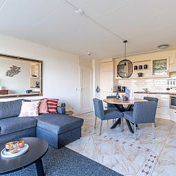 Spacieux appartement pour 2 personnes avec vue sur la mer au rez-de-chaussée avec spacieuse terrasse meublée orientée vers l'ouest. Vue sur les dunes et la mer du Nord. La salle de séjour dispose d'un coin salon avec télévision et d'une table à manger pour 2 personnes. La cuisine ouverte est entièrement équipée et comprend un lave-vaisselle, un four à micro-ondes, un réfrigérateur-congélateur et plusieurs machines à café. La chambre à coucher spacieuse dispose d'un lit double et de deux matelas simples et offre une vue imprenable sur la mer. La salle de bains est équipée d'une baignoire à bulles, d'une douche séparée et d'un double lavabo. Les toilettes sont séparées. La terrasse offre une vue magnifique sur la mer du Nord. La terrasse est équipée d'un mobilier de jardin. Le complexe dispose d'une laverie payante. Des meubles pour enfants sont disponibles sur demande et moyennant un supplément. Wifi gratuit. Il est interdit de fumer. Il y a une place de parking par logement.