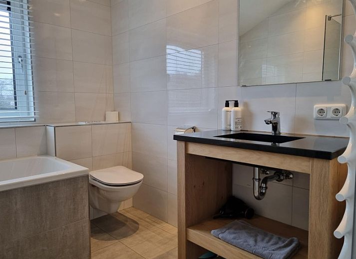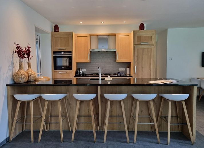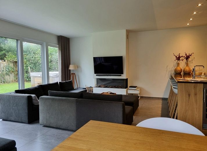 Au rez-de-chaussée se trouve une salle de séjour spacieuse, orientée vers le jardin et dotée de nombreuses fenêtres, d'un joli coin salon, d'une grande table à manger et d'une cuisine ouverte avec bar. La cuisine en bois fabriquée à la main est équipée d'un réfrigérateur, d'un lave-vaisselle, d'une cuisinière à gaz à 5 feux, d'un Quooker, d'une machine Nespresso, d'une machine à café filtre et d'un refroidisseur de vin, ainsi que d'une grande quantité de vaisselle et d'ustensiles. L'une des trois portes coulissantes s'ouvre sur le jardin arrière.
