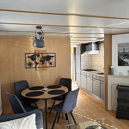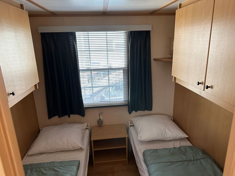 La salle de séjour comprend un coin salon avec une cheminée confortable, une chaîne stéréo, un lecteur CD/DVD et une télévision à écran plat avec des chaînes allemandes uniquement. Il y a également un coin repas. La cuisine ouverte est équipée d'un grille-pain, d'une bouilloire et d'une cafetière. Il y a deux chambres à coucher, dont une avec un lit double (140 x 200). Dans l'autre chambre, il y a deux lits simples (70 x 190). La salle de bains est équipée d'une douche, d'un lavabo et de toilettes. Le chalet dispose d'un jardin avec terrasse. Des meubles de jardin sont disponibles.