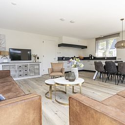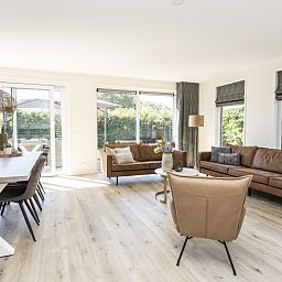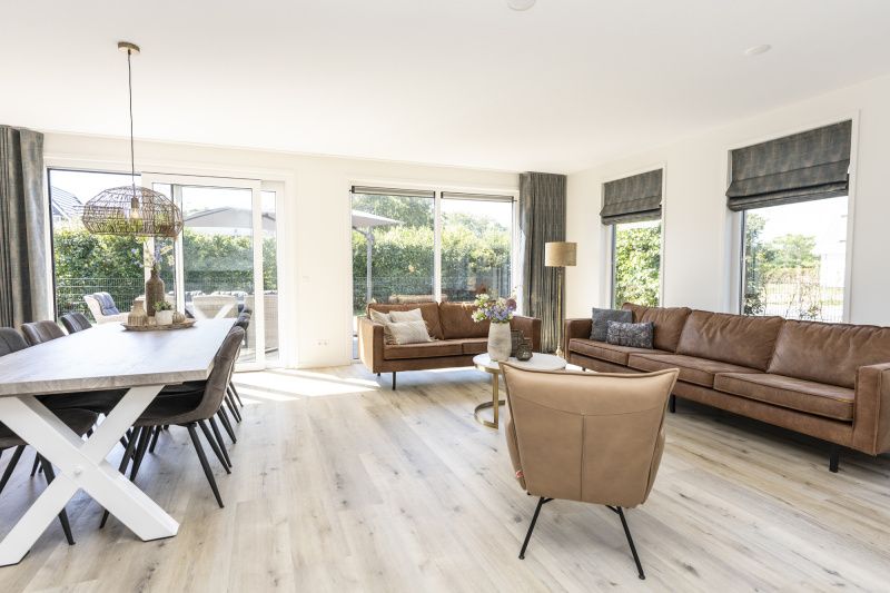Le salon de cette villa individuelle comprend un coin repas et un coin salon avec télévision par câble et chaîne hi-fi. Il y a un hall spacieux avec des toilettes. La cuisine est équipée d'une plaque de cuisson à induction, d'un réfrigérateur avec congélateur, d'un lave-vaisselle, d'un four à micro-ondes, d'un four, d'une cafetière, d'un Nespresso, d'une bouilloire et d'un grille-pain. Un lave-linge et un sèche-linge se trouvent dans le cellier. Au rez-de-chaussée se trouve une chambre à coucher avec deux lits simples à sommier et une salle de bains privée avec douche et lavabo. A l'étage, il y a 3 chambres à coucher, chacune avec deux lits simples à sommier à ressorts. Il y a une salle de bains avec baignoire, douche solaire et lavabo, ainsi que des toilettes séparées. Les villas sont économes en énergie et sont chauffées à l'aide d'une pompe à chaleur. Cette villa de luxe dispose d'un jardin spacieux avec une terrasse orientée au sud. Des meubles de jardin sont disponibles. Les lits sont équipés de couettes synthétiques.