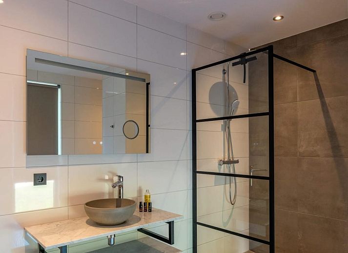 1 Chambre à coucher au 1er étage avec dans les deux chambres 2 lits boxspring simples 90x210 avec douche à l'italienne, toilettes et sauna