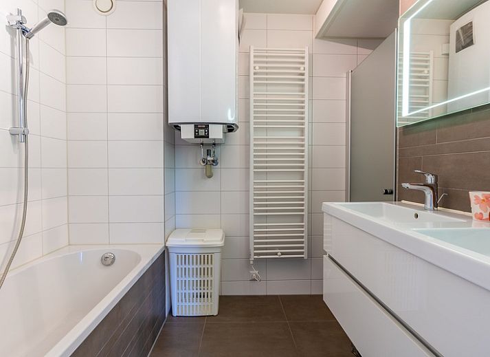 La salle de bains soignée est équipée d'une baignoire, d'une douche et d'un double lavabo. Les toilettes sont situées à part. L'appartement dispose d'un balcon orienté au sud avec une vue oblique sur la mer et les dunes. Des meubles de jardin sont disponibles. Vous pouvez regarder le soleil se lever depuis la terrasse.