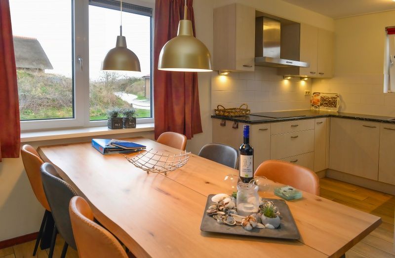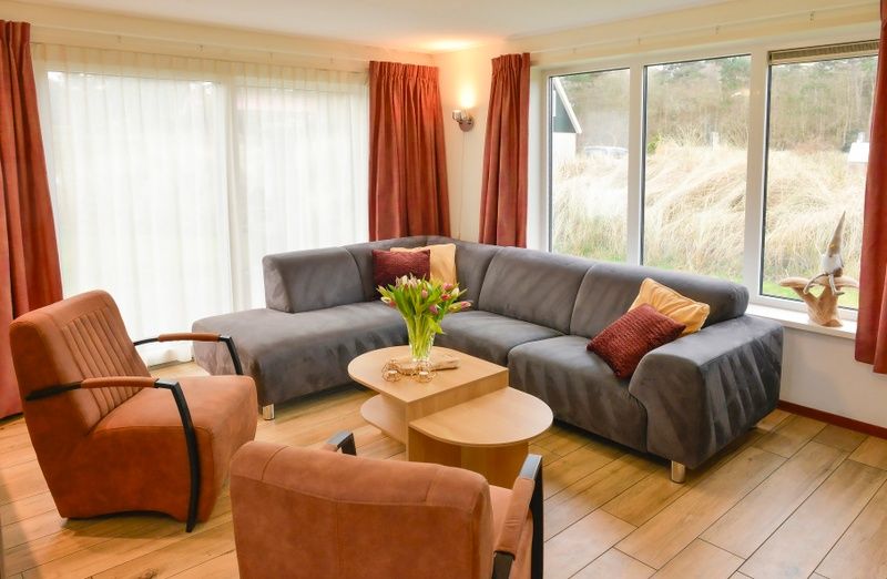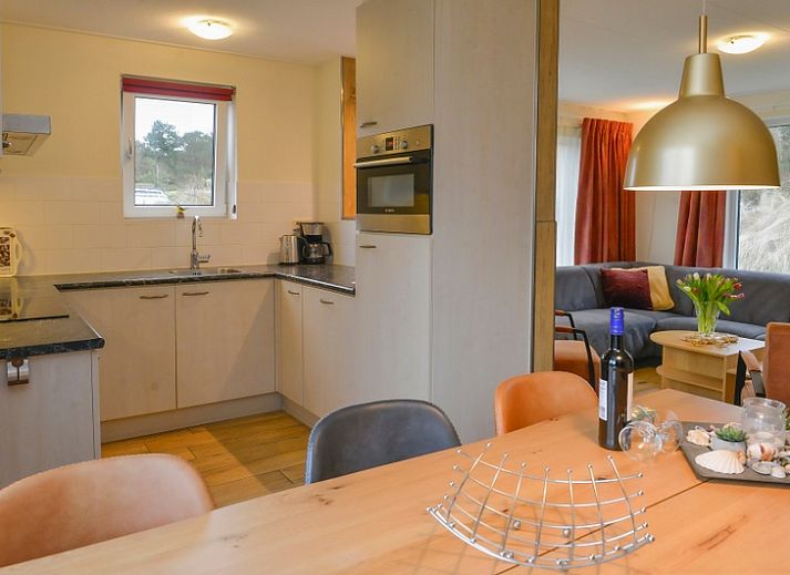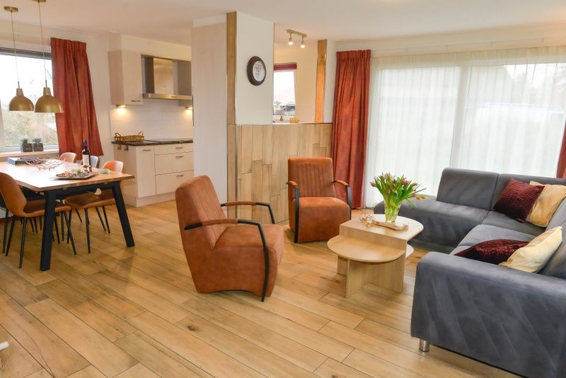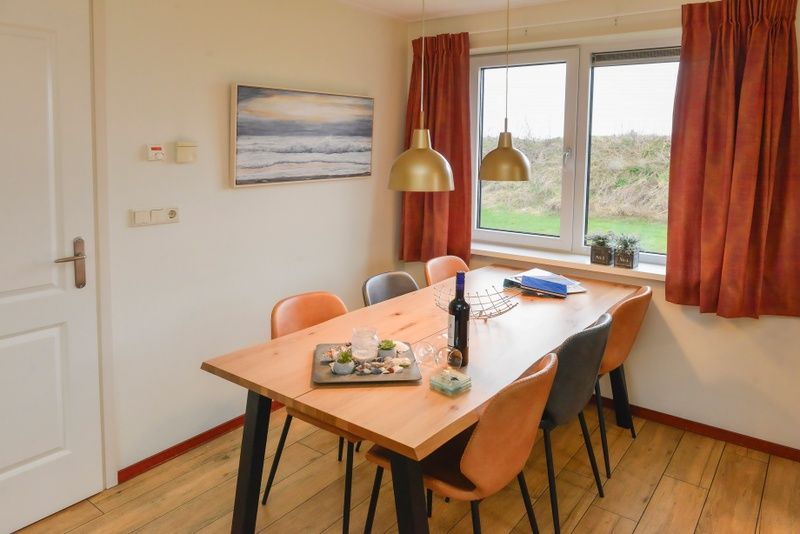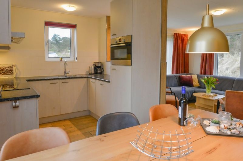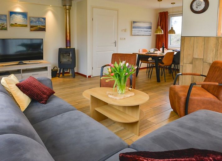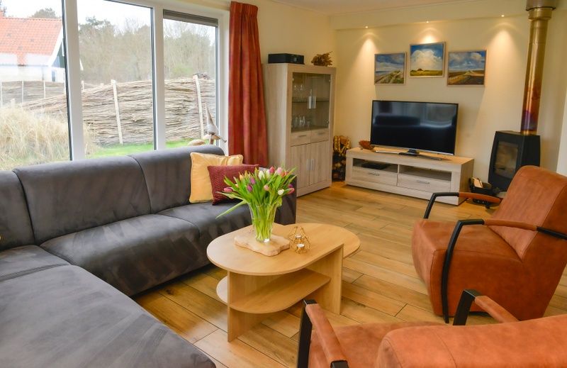 Le salon est équipé d'un poêle à bois, d'une télévision à écran plat, d'un lecteur blue-ray et d'une radio/lecteur CD avec station d'accueil. Il y a également un coin repas. La cuisine ouverte est équipée d'une plaque de cuisson à induction à 4 feux, d'un réfrigérateur avec congélateur, d'un lave-vaisselle, d'un four à micro-ondes combiné, d'une cafetière, d'une machine à café Senseo et d'une bouilloire. Au rez-de-chaussée se trouve une chambre à coucher avec un lit double à sommier et une télévision. La salle de bains adjacente est équipée d'un lavabo et d'une douche à effet pluie avec douche solaire. Les toilettes sont séparées. A l'étage se trouvent deux chambres à coucher, chacune avec deux lits simples à sommier tapissier. Il y a une deuxième salle de bains avec bain à remous, douche, lavabo et toilettes. Cette maison de vacances dispose d'un grand jardin avec une terrasse orientée au sud.