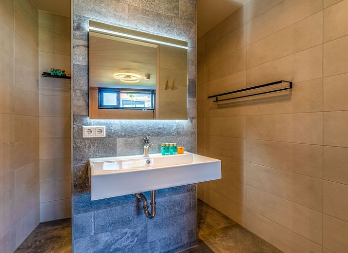 Les escaliers vous conduisent sans surprise au sous-sol. La grande salle offre deux grandes chambres. Chaque chambre dispose d'une salle de bains attenante équipée d'une spacieuse douche à l'italienne avec douche à effet de pluie et d'un meuble-lavabo. L'une des salles de bains est légèrement plus grande et donc équipée d'une baignoire. Le sous-sol dispose également d'un sauna pour 8 personnes et de toilettes séparées. Au premier étage, vous trouverez deux chambres à coucher, toutes deux dotées d'une salle de bains attenante avec une douche spacieuse à l'italienne avec douche à effet de pluie et un meuble-lavabo. L'une des salles de bains est légèrement plus grande et donc équipée d'une baignoire. Toutes les chambres de la maison sont équipées de lits à ressorts confortables et d'une télévision intelligente. Les lits sont faits en standard et les serviettes sont fournies. Des toilettes séparées se trouvent sur le palier.