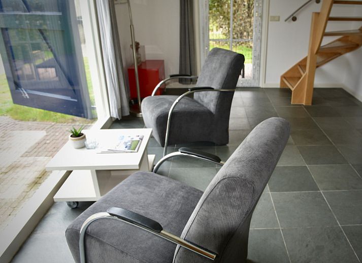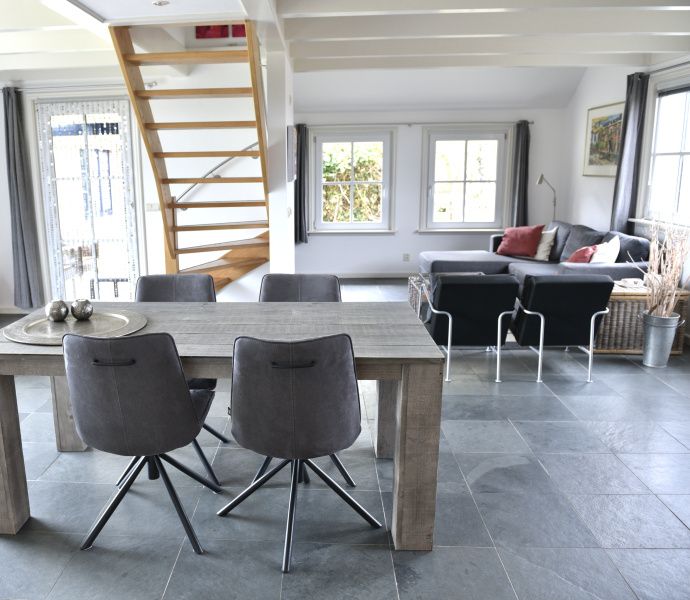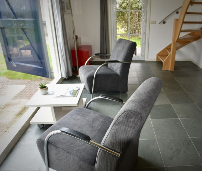 Le salon (chauffage au sol) dispose d'un coin salon avec une télévision intelligente, deux fauteuils relax et une table à manger avec 4 chaises. La cuisine ouverte est équipée d'un lave-vaisselle, d'un four à micro-ondes, d'un réfrigérateur, d'une machine à café Nespresso et d'une machine à café filtre. Au rez-de-chaussée se trouve une salle de bains avec baignoire, douche, lavabo et toilettes. L'escalier ouvert mène à l'étage supérieur, où se trouvent une chambre à coucher avec un lit double et une chambre à coucher avec deux lits simples et des armoires encastrées. La maison de vacances de Boet dispose d'un coin salon abrité et d'une terrasse exposée au sud. Des meubles de jardin sont disponibles.
