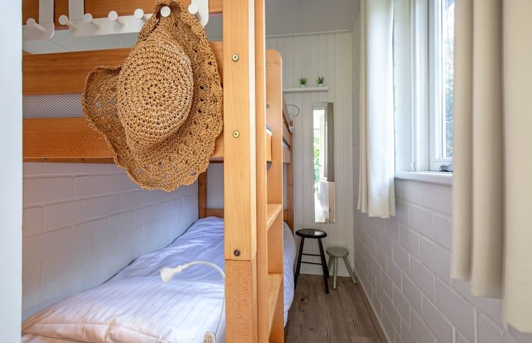 Le salon dispose d'un coin salon avec télévision et d'un coin repas. La cuisine est équipée d'un réfrigérateur-congélateur, d'un four, d'un lave-vaisselle et d'une cafetière à filtre. Il y a deux chambres à coucher : une avec un lit double (1,60 m de large) et une petite chambre avec des lits superposés (90 cm de large) pour les enfants. Salle de bains avec douche et toilettes.