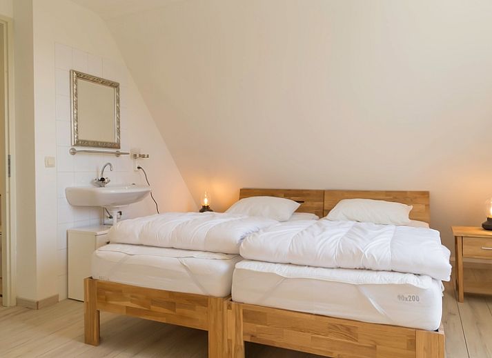 Entrée, salle de séjour avec coin salon, coin repas et télévision. Cuisine ouverte avec réfrigérateur-congélateur, four à micro-ondes, lave-vaisselle, machine à café Senseo, bouilloire et cafetière. Chambre à coucher avec 2 lits simples. Salle de bains avec douche, lavabo et toilettes. Toilettes séparées. Au premier étage se trouvent deux autres chambres à coucher, chacune avec 2 lits simples et un lavabo. Deuxième toilette séparée. Cette maison de vacances indépendante dispose d'un jardin spacieux avec terrasse et mobilier de jardin.